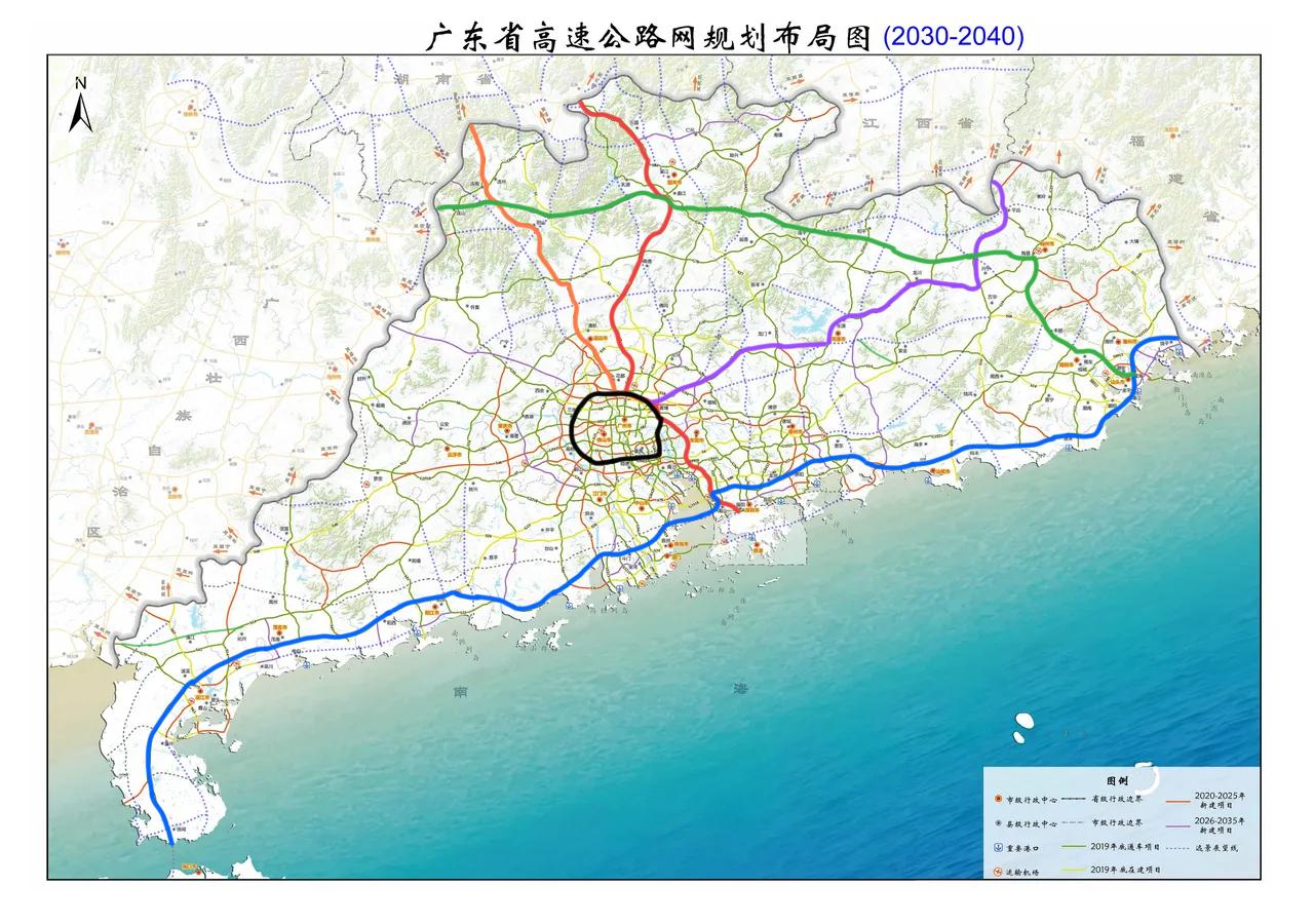 总结:下面的图,红色线路为京港澳高速广东段未来的路线,蓝色线路为沈海高速广东段未来的路线,紫色线路为济广高速广东段未来的路线,橙色线路为二广高速广东段未来的路线,绿色线路为汕昆高速广东段未来的路线,黑色线路为广州绕城高速新路线。根据现有的国家高速这样的调整,现有的其他国家高速也这样调整,许广高速调整到广连高速作为京港澳高速的一条复线,深南高速调整到深中通道和中阳信高速来缓解深岑高速的交通压力,深岑高速深圳至中山段调整到深圳至南沙过海通道,南中高速与深圳外环高速一起共线。把现有的国家高速主干线从原来的跨省长途交通和货运物流功能,确保国家大动脉的畅通和效率。变成了现在的带动区域之间的发展。让广东省的发展再次腾飞。莞广高速和广州绕城高速由于受沈海高速主干线的调整,莞广高速的编号从原来的G1536调整为G0414,广州绕城高速的编号从原来的G1508调整为G0402 。