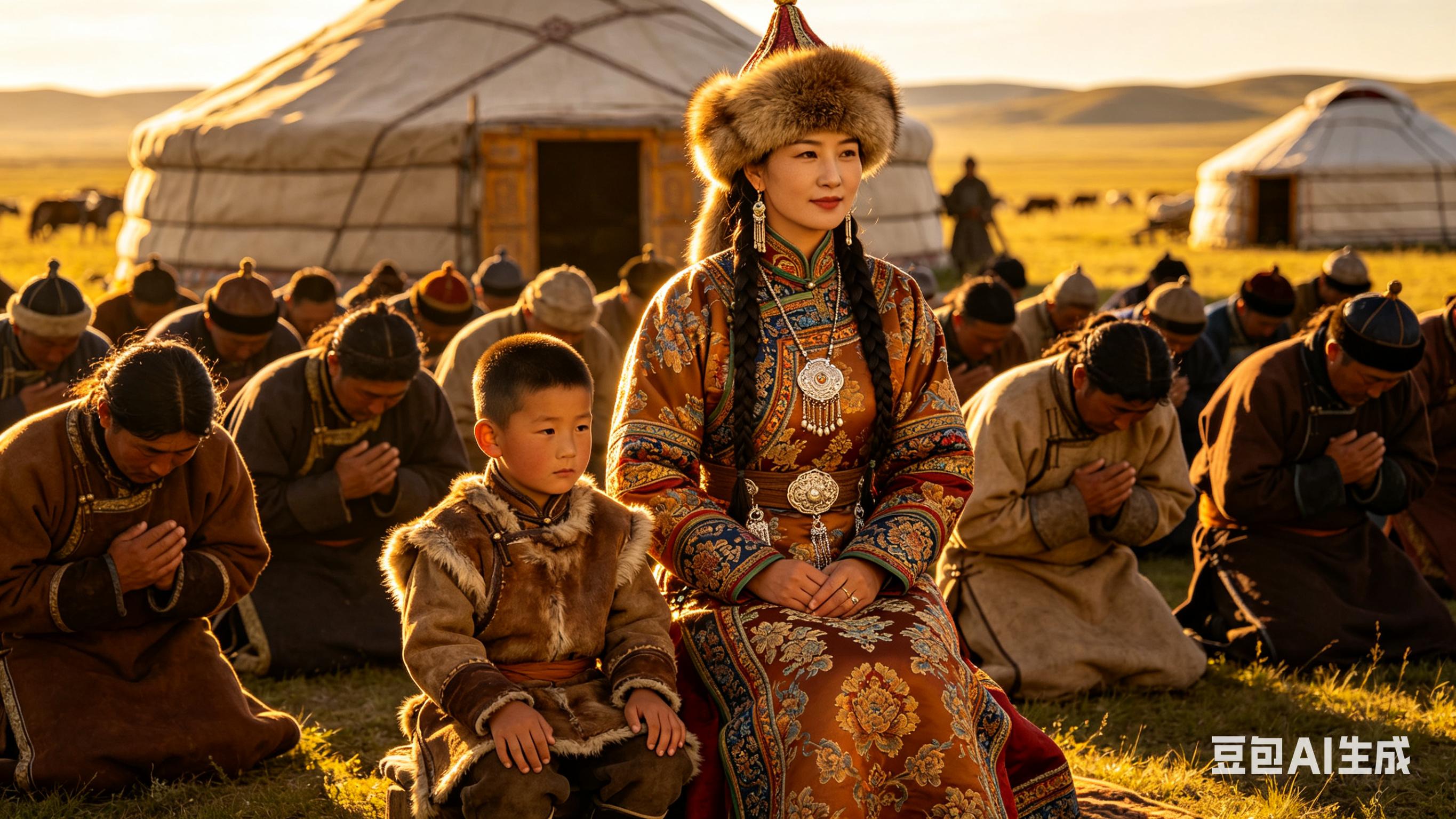 公元1480年,在浩瀚无际的蒙古草原,阳光明媚。一位32岁女人,拉着一个年仅7岁的小男孩,在蒙古军营,举行了婚礼。