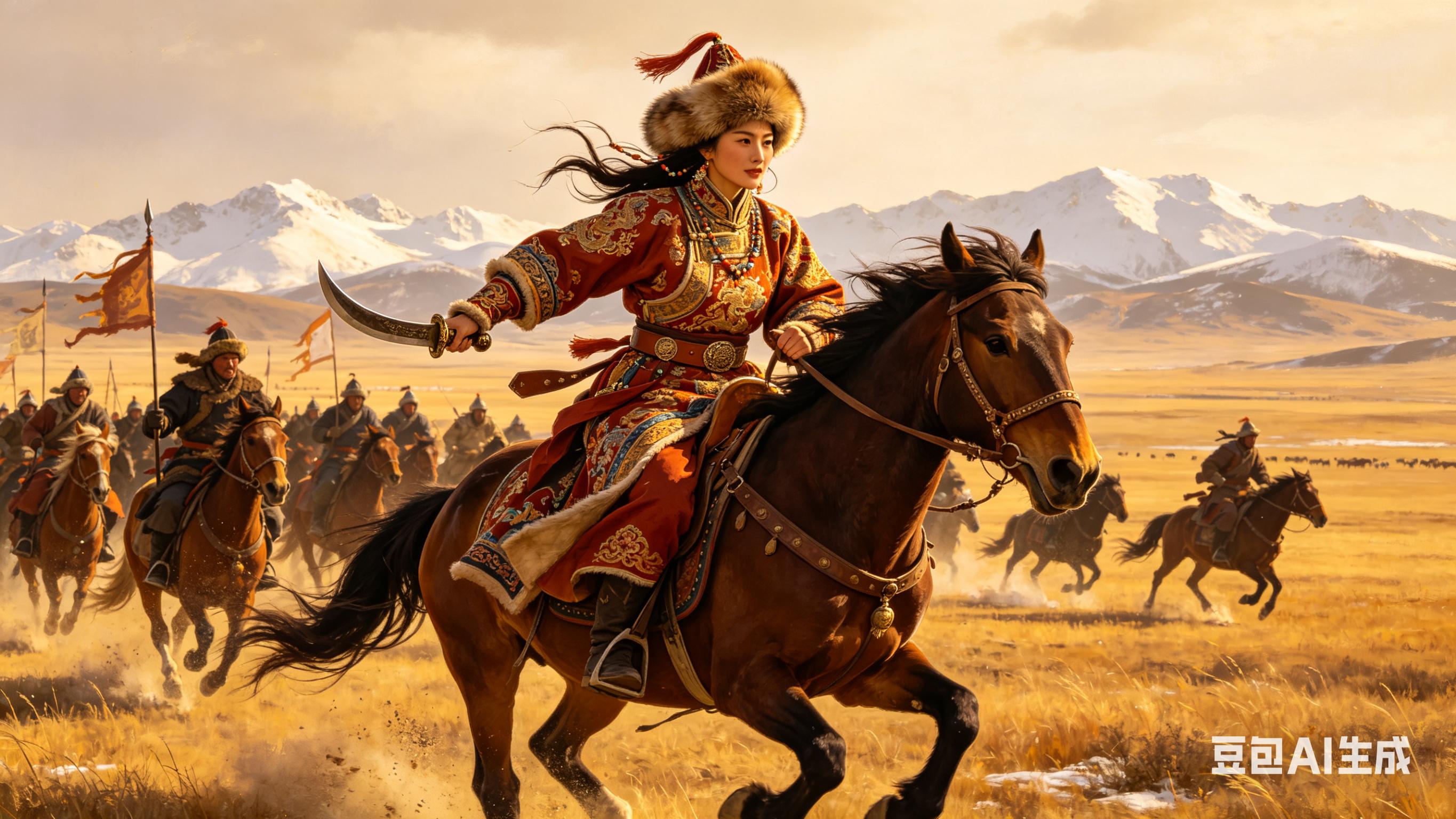 而满都海丝毫没有退缩,身披战甲,骑上战马,手握弯刀,率领蒙古铁骑,驰骋草原,四处征战。