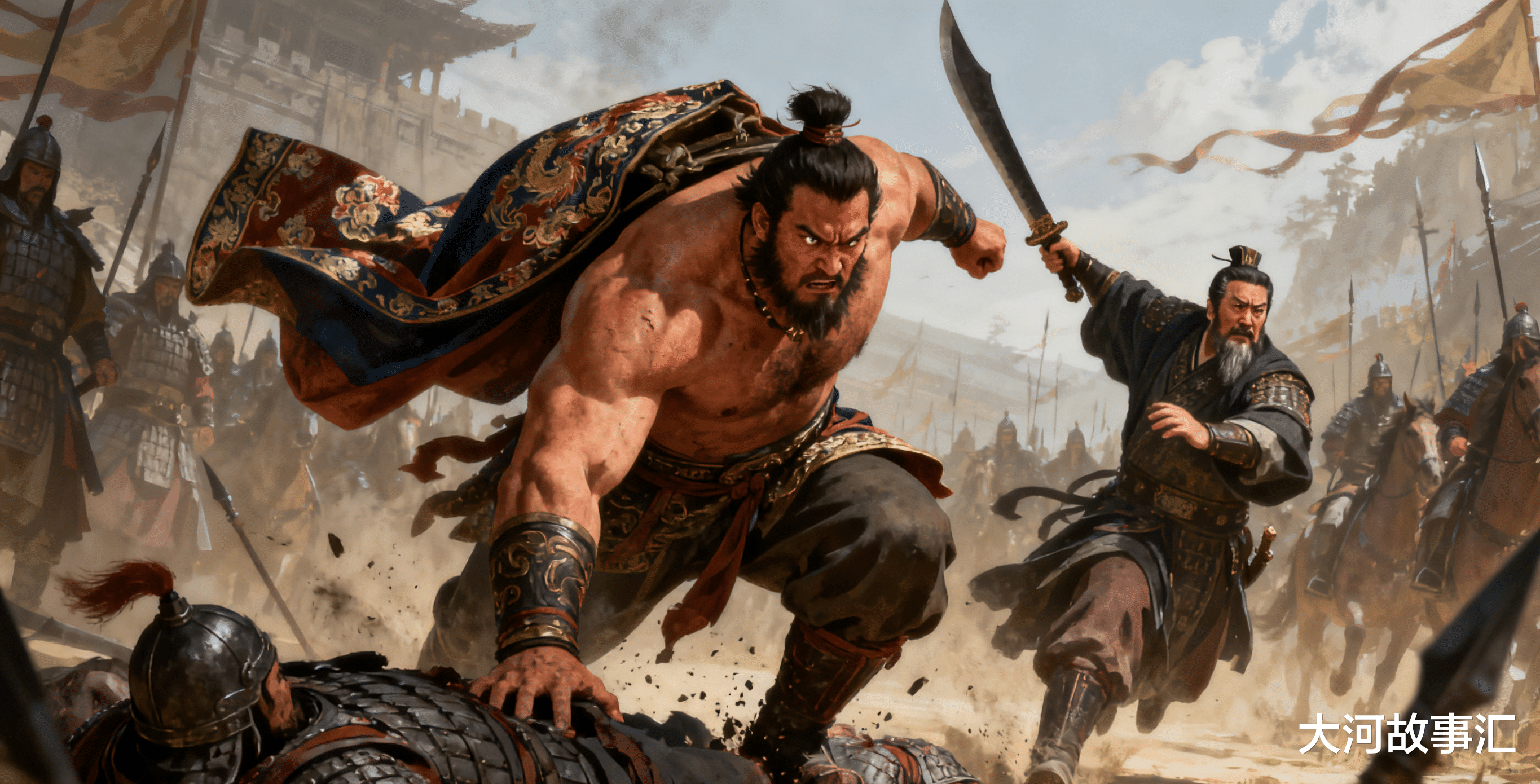 危急时刻,许褚弃刀跃前,以身躯护住曹操。马超一枪刺来,穿透许褚肩甲,鲜血迸流。许褚却恍若未觉,反手抓住枪杆,猛力一拽,竟将马超拉下马来。