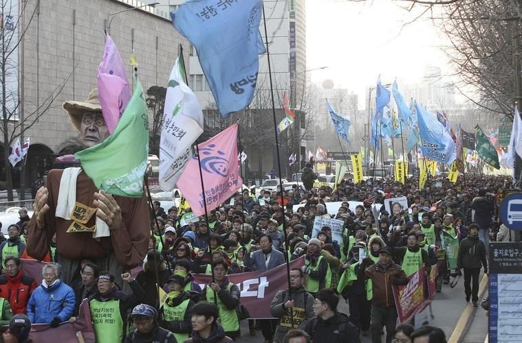 与此同时,她强推“养老金改革”,要求公务员缴纳比例提高至9%,引发公务系统大规模罢工。这种“劫公济私”的福利设计,暴露其政策内核仍是朴正熙时代的功利主义——以短期收买换取长期控制。2015年,20万民众在光化门集会,高呼“独裁之女滚下台!”