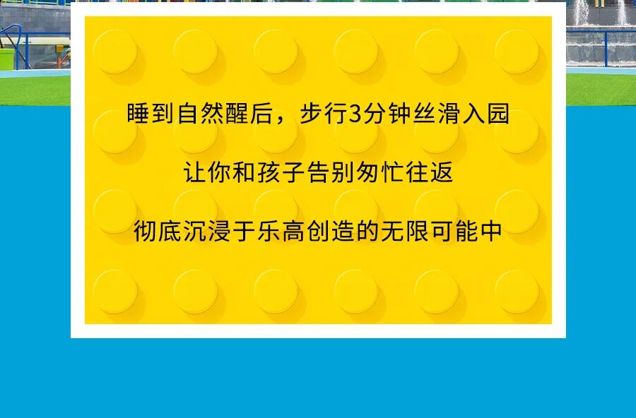 从酒店出发,仅需步行约150米,即可到达乐高乐园,3分钟丝滑入园,为家长和孩子都省去了舟车劳顿之苦,带来便利和游刃有余的选择。