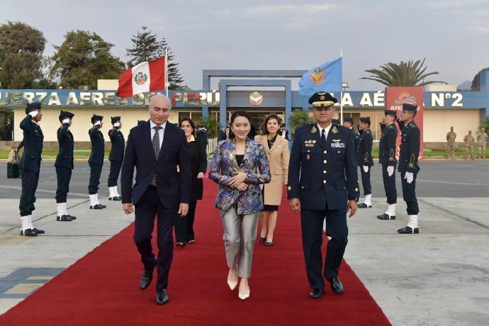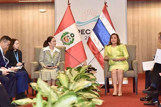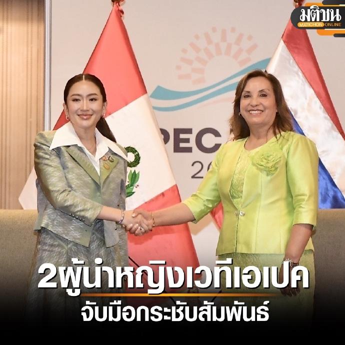 当然了就在同一天,佩通坦总理还与秘鲁总统举行了会谈,这两位非常有才华的女强人均对本次见面表示高兴。秘鲁女总统打扮也很贵气,只见她穿一身浅绿色西装和套裙非常减龄,不过就是身材有点圆润了,气场和魅力也是非常强。估计秘鲁女总统看到佩通坦这么漂亮也很喜欢。