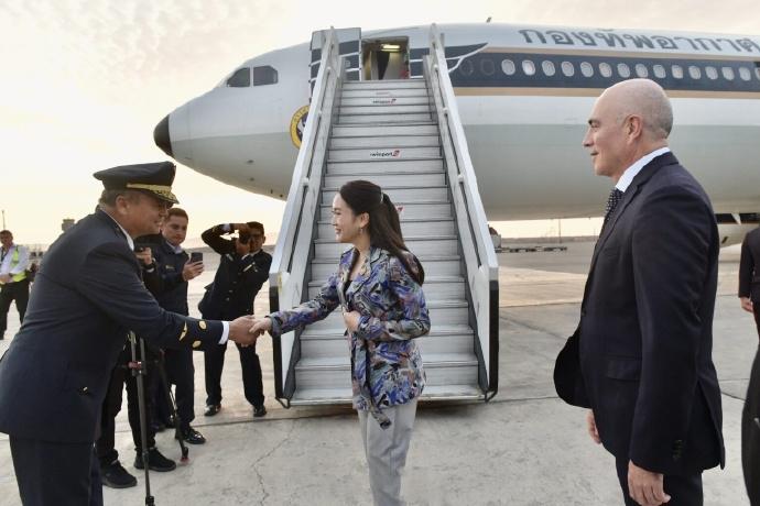 泰国总理启程回国,迷彩上衣配银色裤子好惊艳,送行小姐姐超优雅