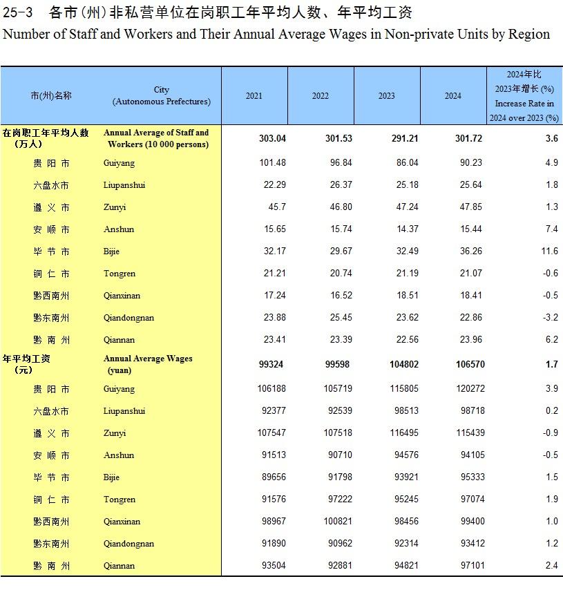 而且,贵阳的非私营单位在岗职工年平均人数,达到了90.23万之多,占到贵阳2024年常住人口660.25万人的13.7%,也就是说,每7.3个贵阳常住人口里面,大约有1个非私营单位在岗职工。