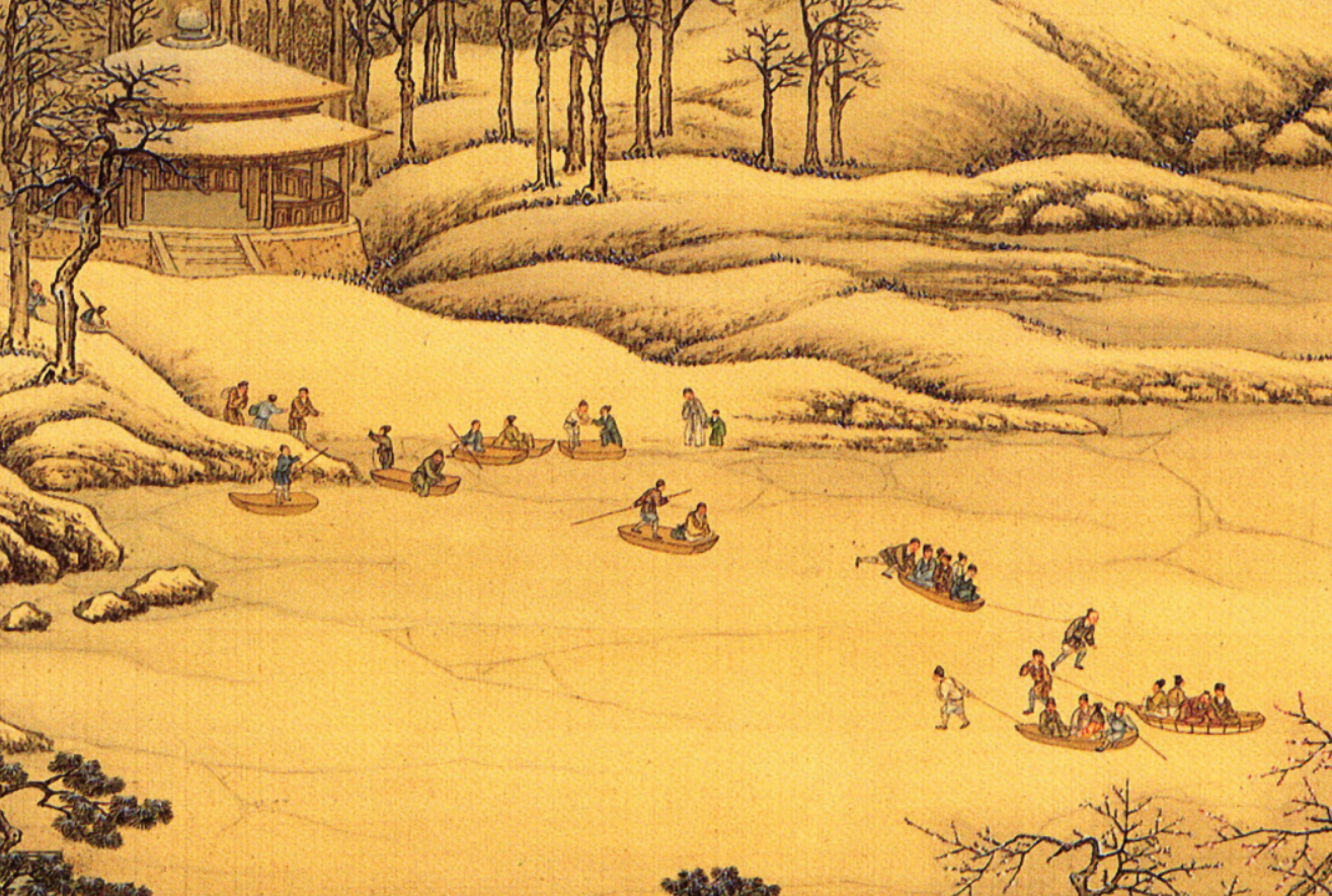 踏雪寻友,江畔待渡