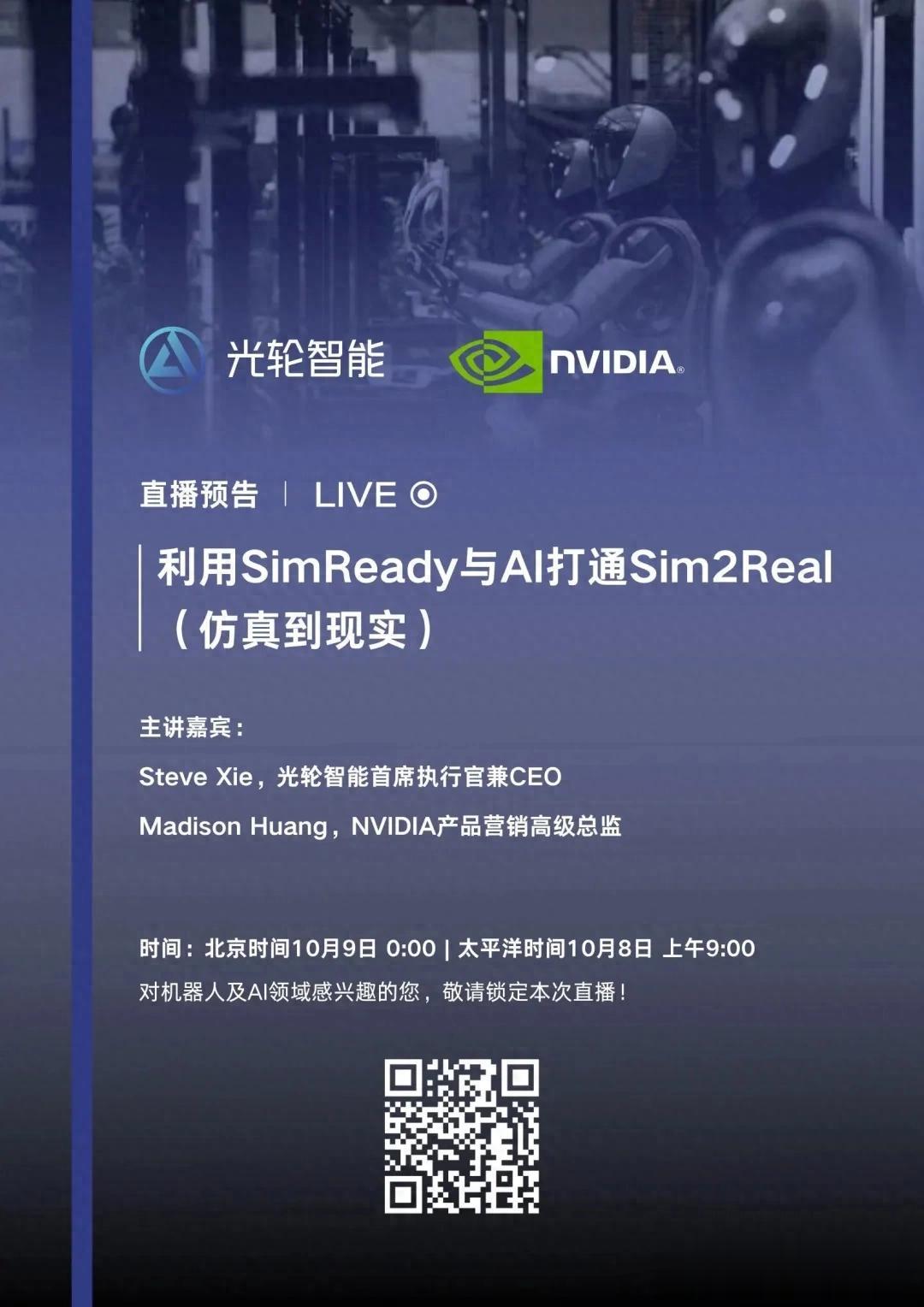 主讲嘉宾 Steve Xie,光轮智能创始人兼CEO Madison Huang,NVIDIA产品营销高级总监 直播时间 北京时间:10月9日 凌晨0:00 太平洋时间:10月8日 上午9:00对机器人及AI领域感兴趣的朋友,欢迎扫码预约,锁定直播席位!