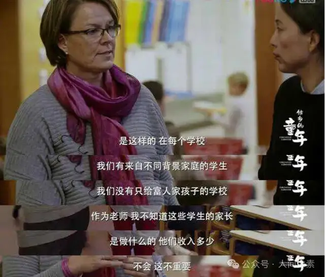 老师对学生是一视同仁的,无论你来自哪个国家,什么阶层。《他乡的童年》里有一所小学,学生来自 25 个国家,说 27 种语言,老师会给每个孩子机会,让他们在广播中教同学们自己的母语。校长说,她不知道学生们的家长工作是什么、收入多少,这和她的教学无关,芬兰没有贵族学校。