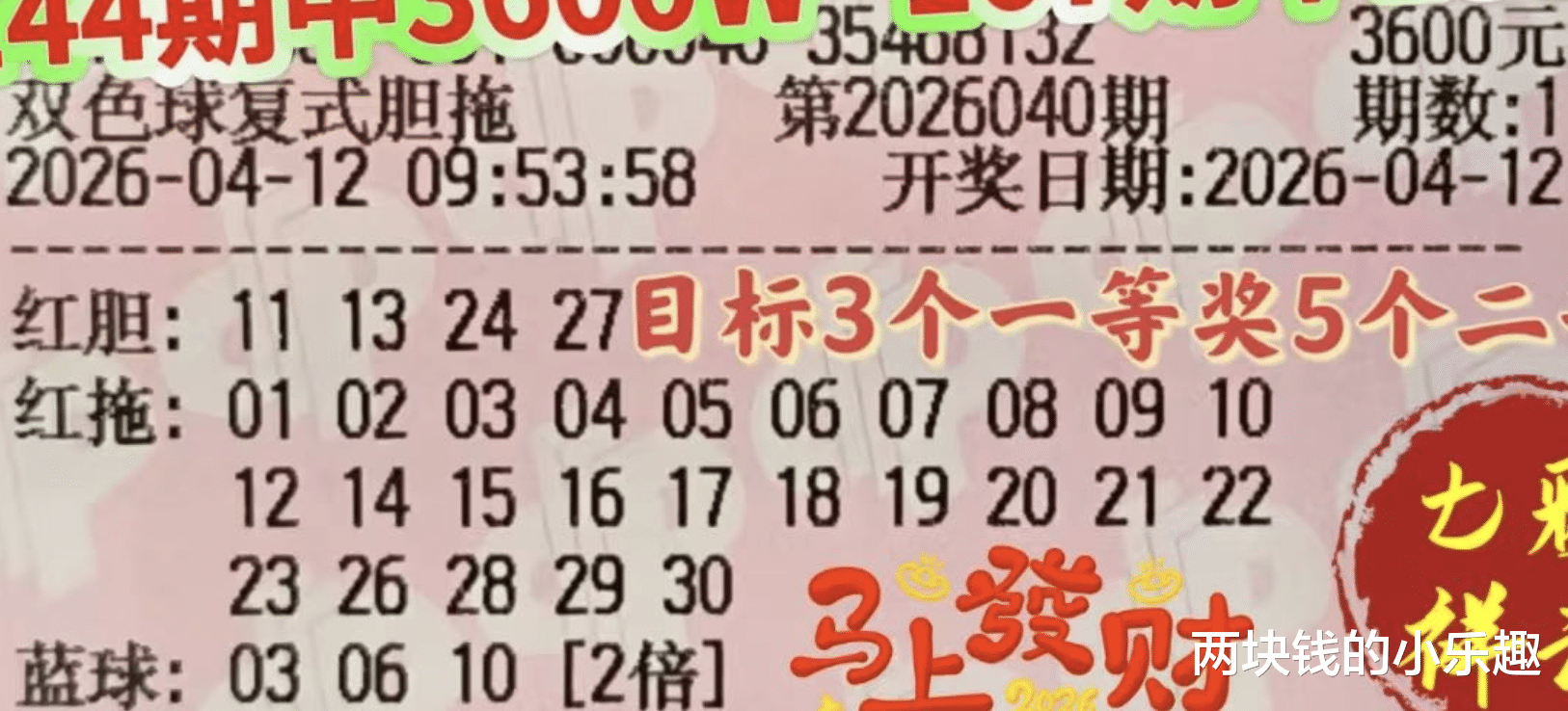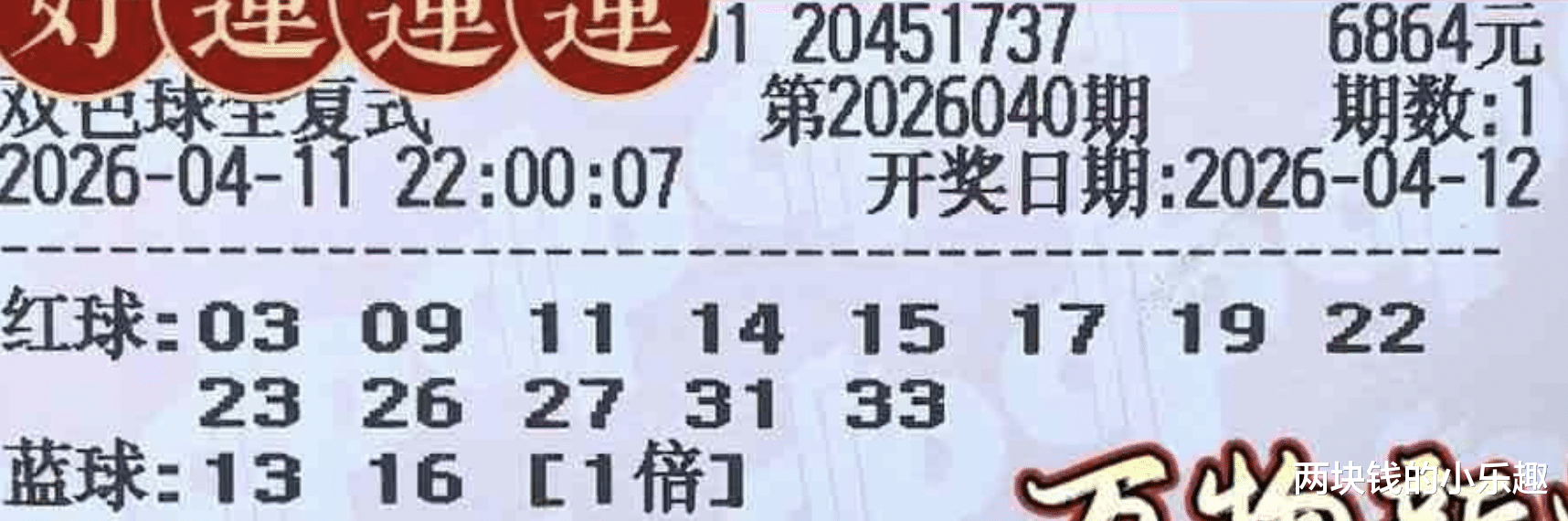 以上就是本期的全部内容,剩余内容依然是各种各样组合形式的复式票,带队出场的是一对同规格13+2的6864复式双雄,本期两张票的蓝球又是同步做了调整,但是仍然保持着相同的姿态,都是一奇一偶的风格,而且都是近期出现不太频繁的冷门,另外还有一对同规格10+5的2100复式双胞胎,一直以来,这个规格的票面始终只有一张,而且从没变换过形式,也没做遗漏过,然而本期突然又出现了一张相同的票面,这倒是出乎大家意料了,这张2100复式迎来了新成员的加入,那么新成员的首场表演会是怎样的结果呢,大家耐心等待结果吧。