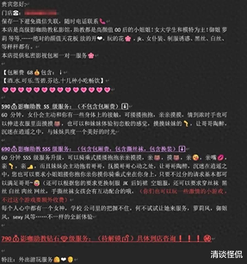 如果还想有进一步的动作,则顾客必须加钱。至于后边如何具体实施,必须要让顾客到店里,才能说明和体验相关具体项目。因暗访人没有去现场,影院工作人员又发来劲爆的私密照片和视频,令人面红耳赤。