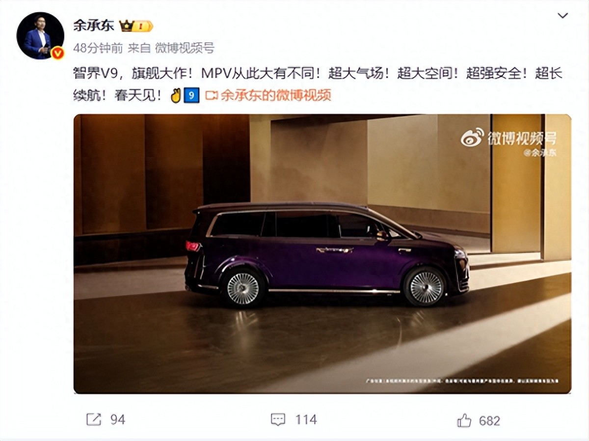 车圈的“顶流”终于揭开了神秘面纱。今日,华为常务董事余承东在社交平台正式发布了鸿蒙智行首款旗舰MPV——智界V9的实车图,并配文定调:“旗舰大作,今年春天见!”这不仅是一句简单的预告,更是华为向高端MPV市场投下的一枚“深水炸弹”。