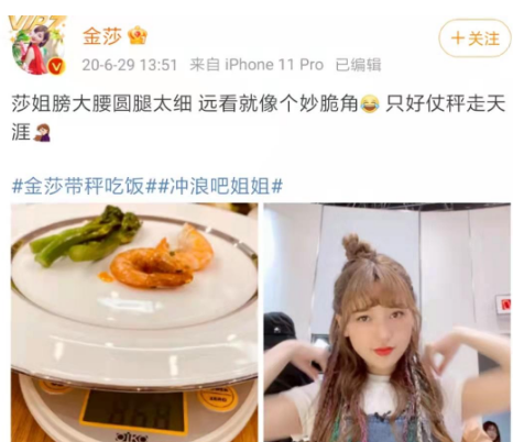 连本就够仙够瘦的歌手金莎,吃饭都要随身带秤,将“斤斤计较”进行到底。