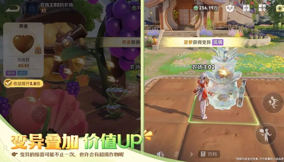 和别的游戏农场相比,王者这次最厉害的就是把农味儿和英雄IP紧紧结合。普通种菜太无趣,王者直接把英雄名字谐音做成了变异作物:澜莓、公孙梨、马可菠萝、安琪拉椒、小乔麦……每一种都击中老玩家的心。更可爱的是,这些作物还带着英雄标志性造型。比如蓝莓穿着澜的风衣,头顶蔡文姬的小花;公孙梨长着公孙离的兔耳朵。谁看见了不想种一盆自己的本命农作物?而且官方很清楚,玩家要的是放松,不是再多一份像上班似的负担。一键种植收获、打排位得经验、有防偷菜驱逐卡,全程不肝不氪,完美契合碎片时间。忙的时候放着不管,闲的时候收收菜,这才是真正的休闲。