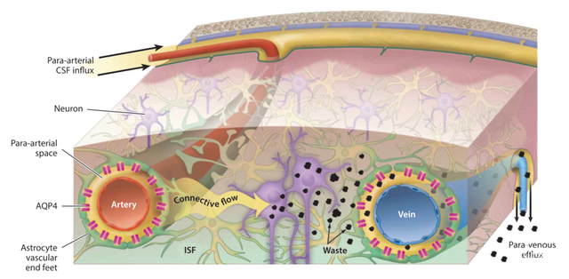 长期以来,科学家们对这个问题的回答基本是:"嗯...这个嘛...我们还在研究中..."。直到2012年,一名叫马肯·内德加德的丹麦裔美国神经学家提出了一个令人兴奋的假说——胶淋巴系统(glymphatic system)。