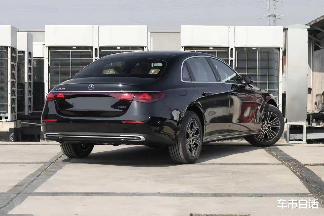 车身线条流畅,动感十足。门把手是隐藏式的,按照新国标要求,以后肯定要改。E260L是常规18英寸轮毂,E300L是前窄后宽的19英寸或20英寸轮毂,视觉效果更大气,也能增加行驶稳定性。