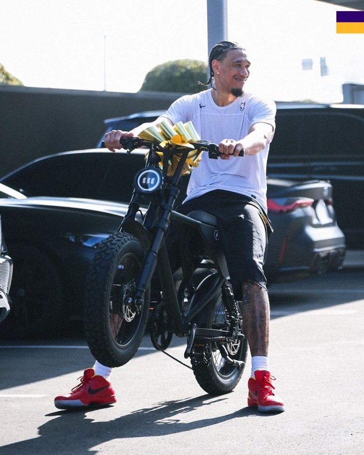 北京时间12月17日,湖人官方晒照,卢卡-东契奇为湖人全队准备了圣诞礼物,是100多辆E-bike电动自行车。