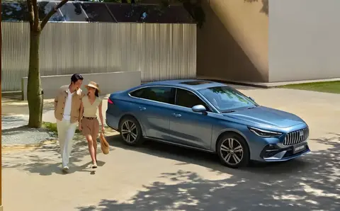车身侧面,星耀6采用溜背式造型,搭配双腰线设计,上方腰线贯穿整个车身,从车头延伸至车尾,让车身看起来更修长;