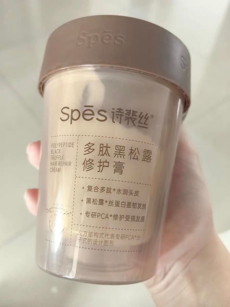 诗裴丝这款发膜配方尚可,适合染后毛躁期用。保湿因子通过包裹技术附着发丝,梳时少掉打结的头发;但成分表天然植物提取排后面,闻着没植物香,用完整根滑了,发尾还是炸,吹半干得再抹护发素,这点鸡肋。