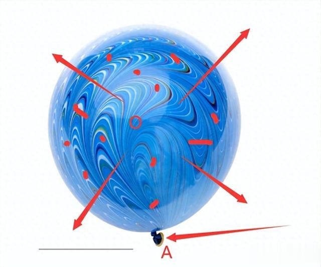 假设气球O能膨胀起来,原因是在A点不断向气球内提供气体,如果A点放气,那么气球就会缩小,这个气球就像我们的宇宙,地球、行星、恒星、星系、黑洞等天体就像附着在气球表面的灰尘,气球膨胀,灰尘之间距离就会增大,气球所有,灰尘之间的距离就会缩小,相比于宇宙,是什么导致宇宙间的星辰距离增大,增大到什么时候回重新缩小呢?