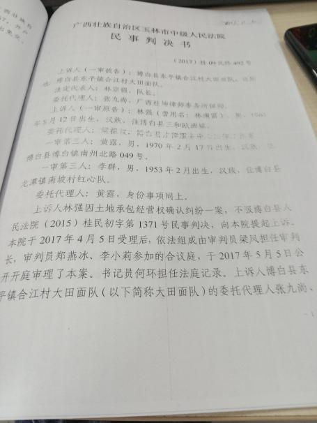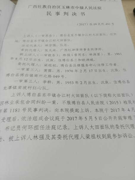 他人强行进场种树,引发冲突2005年,在林强承包合同尚未解除、权属明确的情况下,大田面生产队将部分未开发荒地另行转租给博白县水利电业有限公司职工黄露等人。林强称,对方在未取得合法权属的情况下强行进场挖坑准备种树,他当场提出异议并要求撤离。此后,因黄露一方继续施工,当地村民(作为出租方)拔除了约400株已栽种的树苗,并补种了林强提供的速丰桉苗。