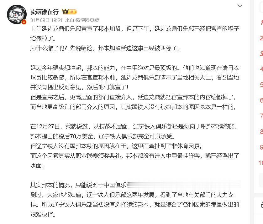 上午刚发官宣海报,下午就火速删帖,这是打谁的脸?延边龙鼎俱乐部今天这一波"自打脸"操作,把中国足球的敏感神经又狠狠戳了一下。日本外援邦本宜裕的加盟,从官宣到叫停不到12小时,背后折射出的不仅是俱乐部冲超的急切,更是整个行业的集体焦虑:当竞技体育遇上民族情绪,我们到底该不该为"赢"妥协?