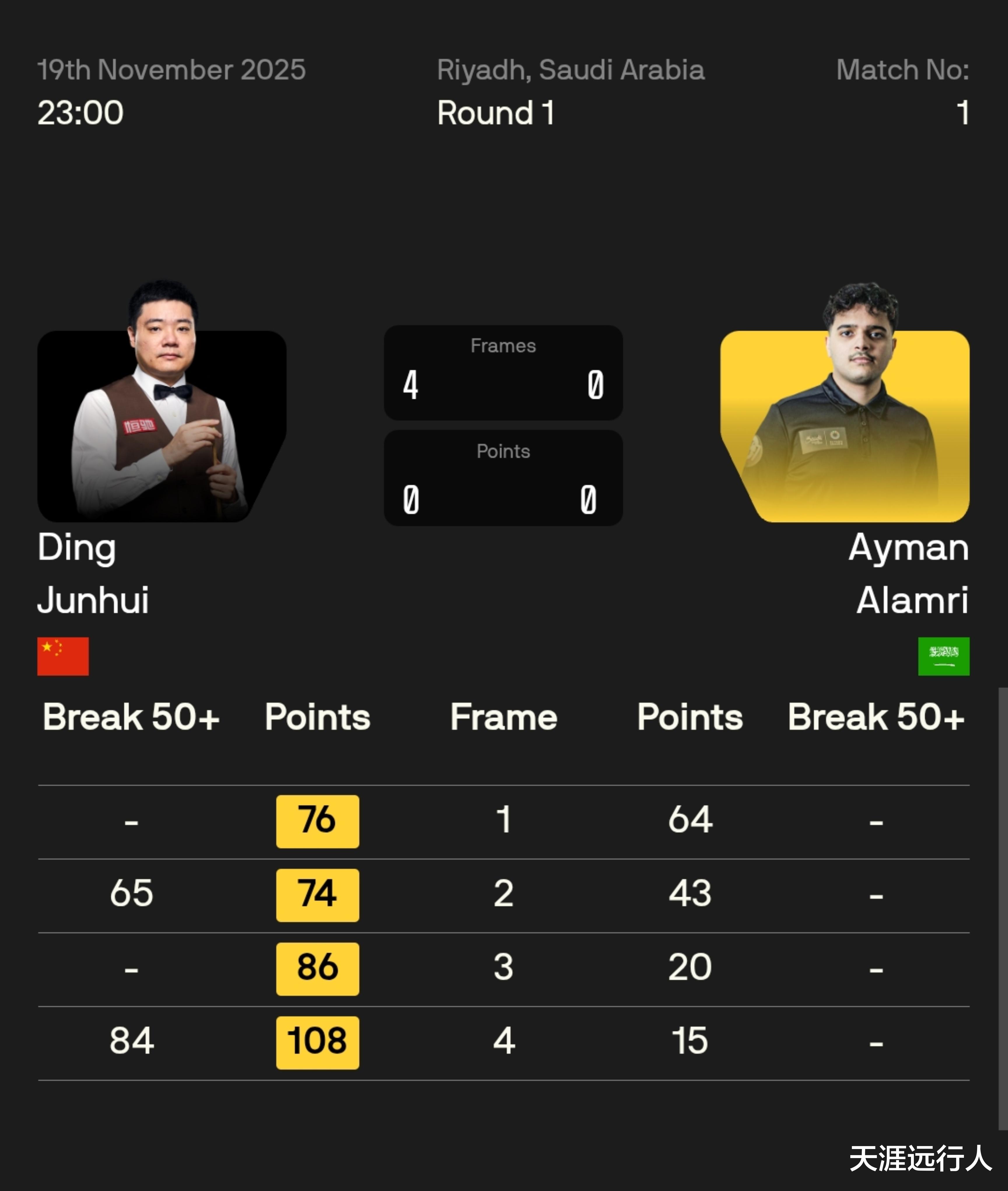 丁俊晖 4-0 艾曼·阿拉姆里