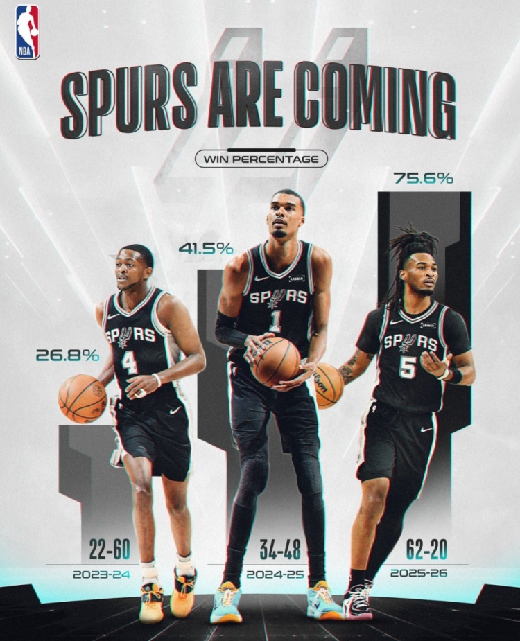 值得一提的是,马刺和活塞都是刚刚才完成重建的球队,但本赛季都拿到超过60胜,这也出乎了很多人的意料。其实上赛季,马刺和活塞都展现了很强的实力,已经成为季后赛级别的球队,活塞最终也以第六的身份直接打进了季后赛,而马刺则是因为文班亚马和福克斯在全明星后双双赛季报销,最终才无缘季后赛。