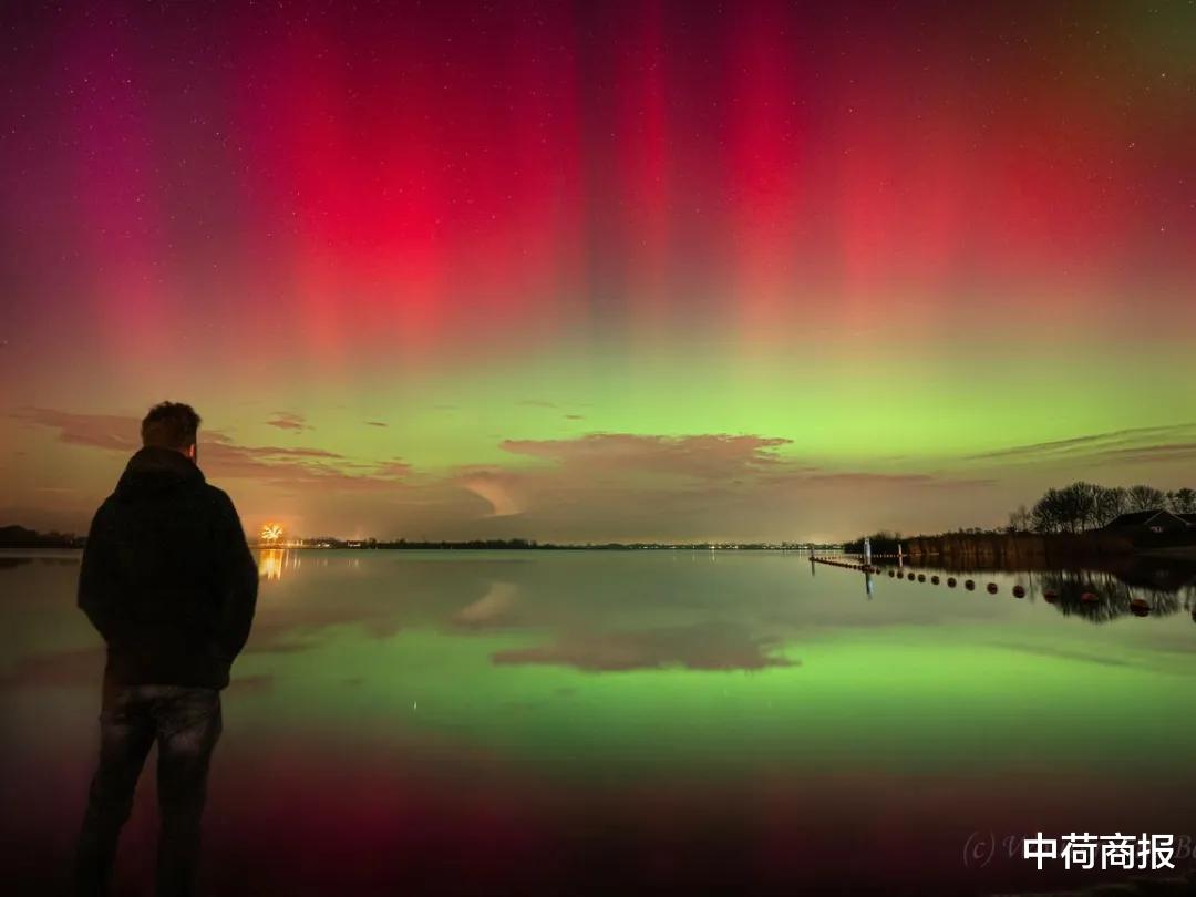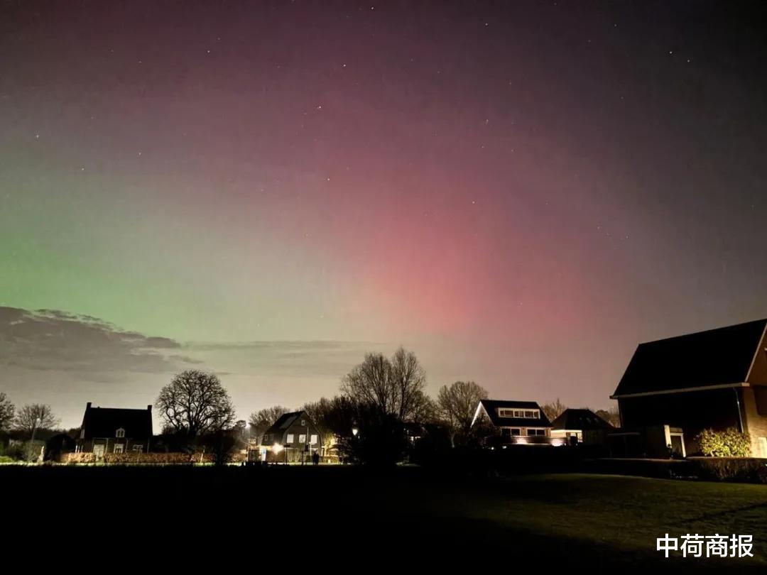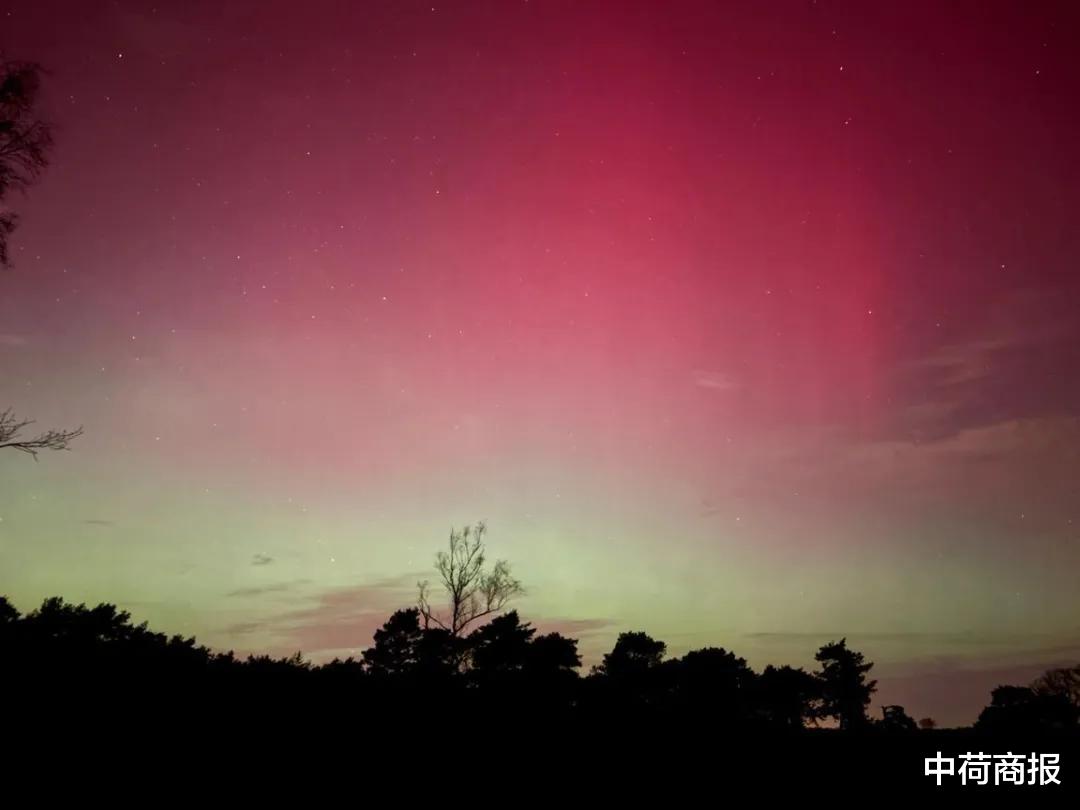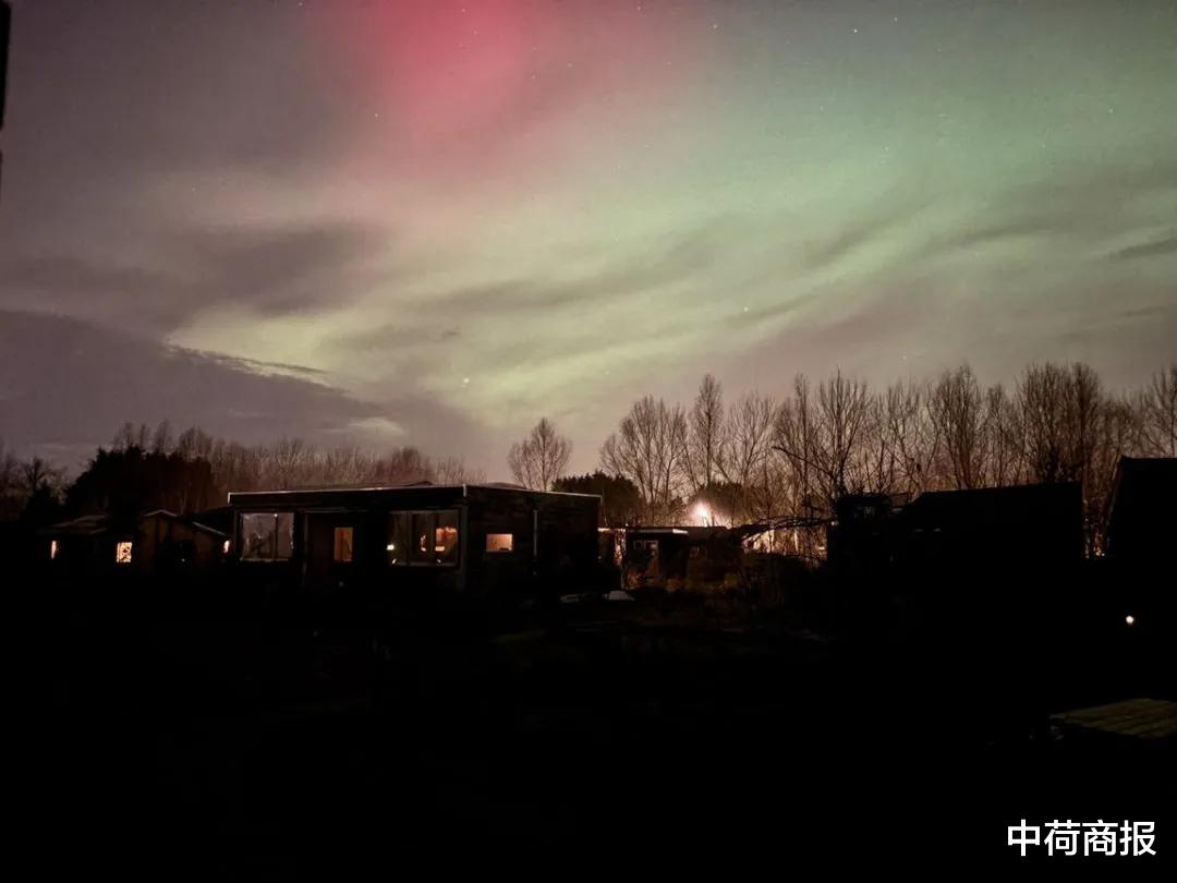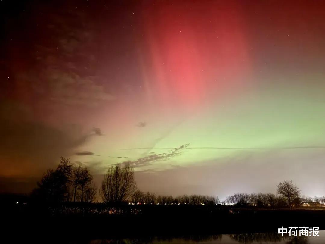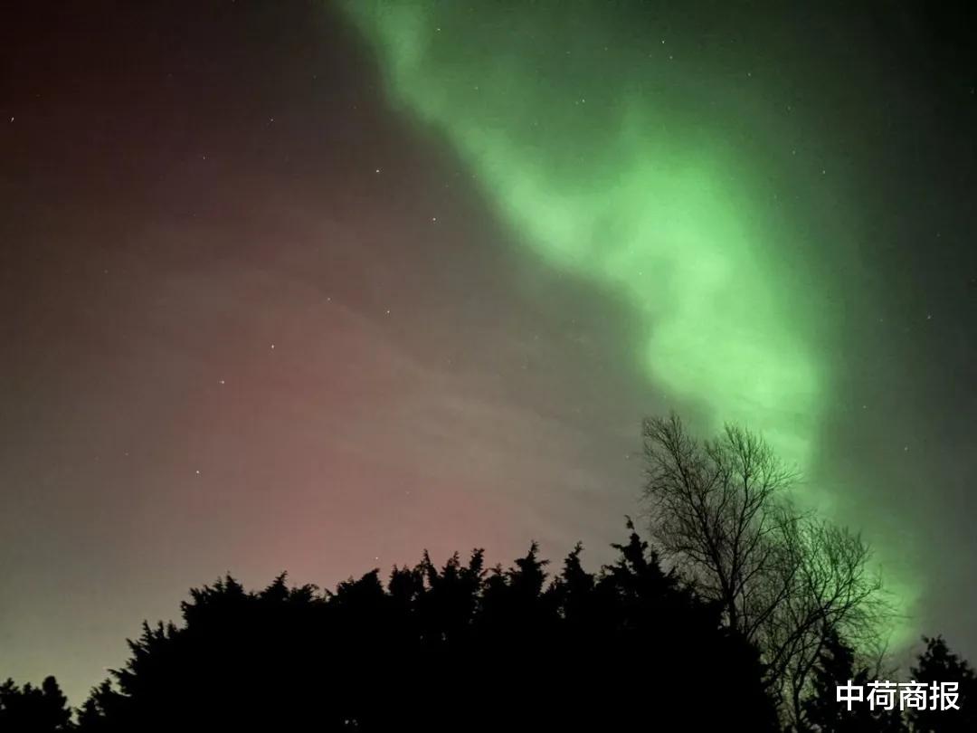 周一晚间,荷兰多地出现了北极光,从纽嫩(Nuenen)一直到格罗宁根(Groningen)都能观测到这一现象。