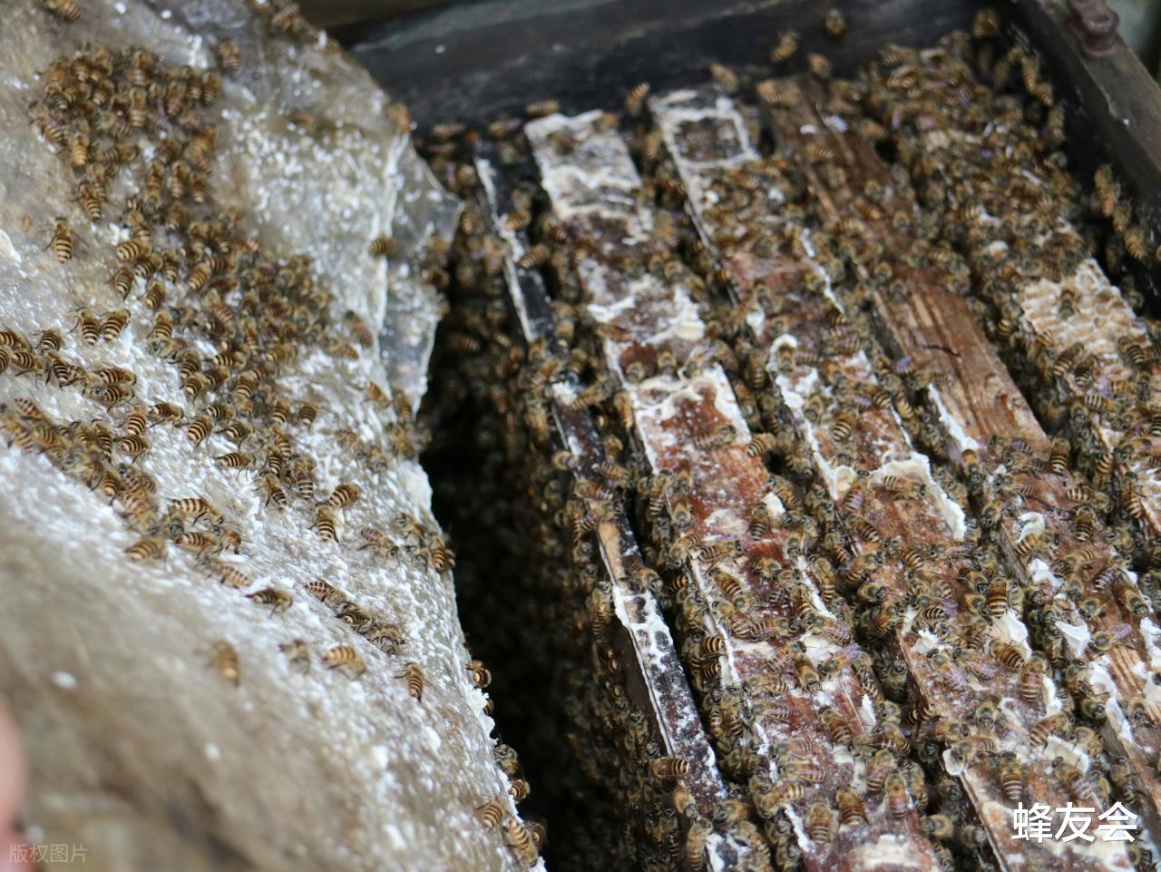 换:子脾下放、蜜脾上提、新脾加边,蜂路8-10mm,通行无阻。 《蜜蜂杂志》数据:蜂脾相称群,分蜂热发生率<8%;蜂少于脾群>55%。