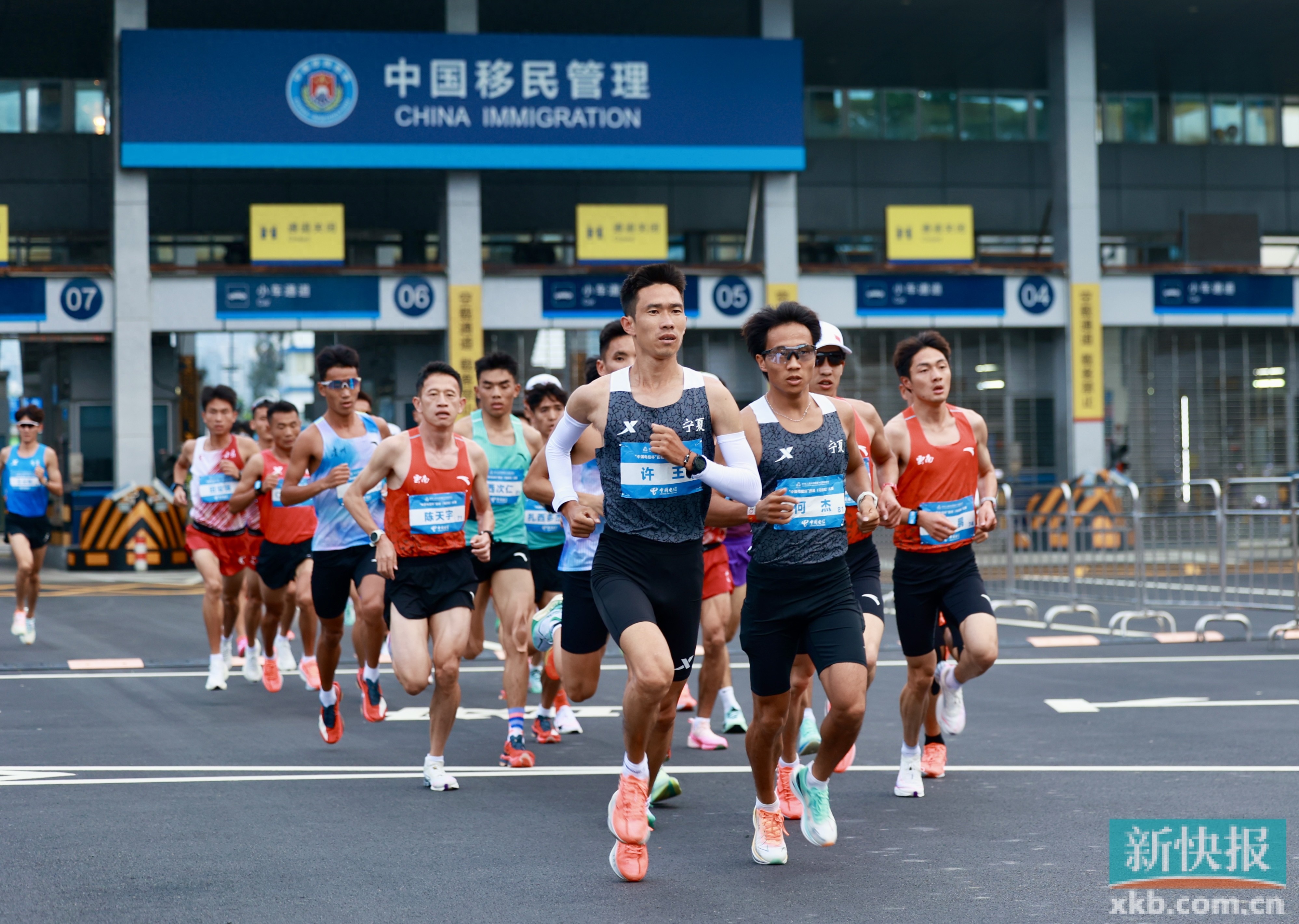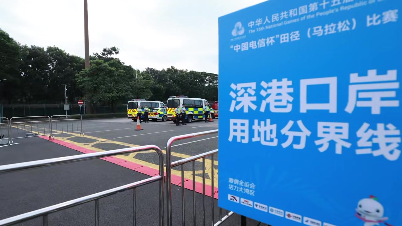 11月15日,十五运会田径(马拉松)比赛开赛,男子马拉松选手经过深圳湾口岸进入香港。