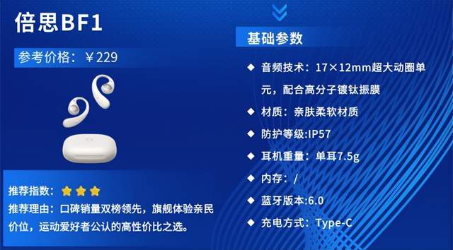 推荐理由:倍思BF1定位极致性价比入门级骨传导耳机,专为预算有限的轻运动、通勤人群设计,主打基础实用与便捷操作,凭借亲民价格、简洁设计与基础防护,成为入门级运动耳机的性价比之王。
