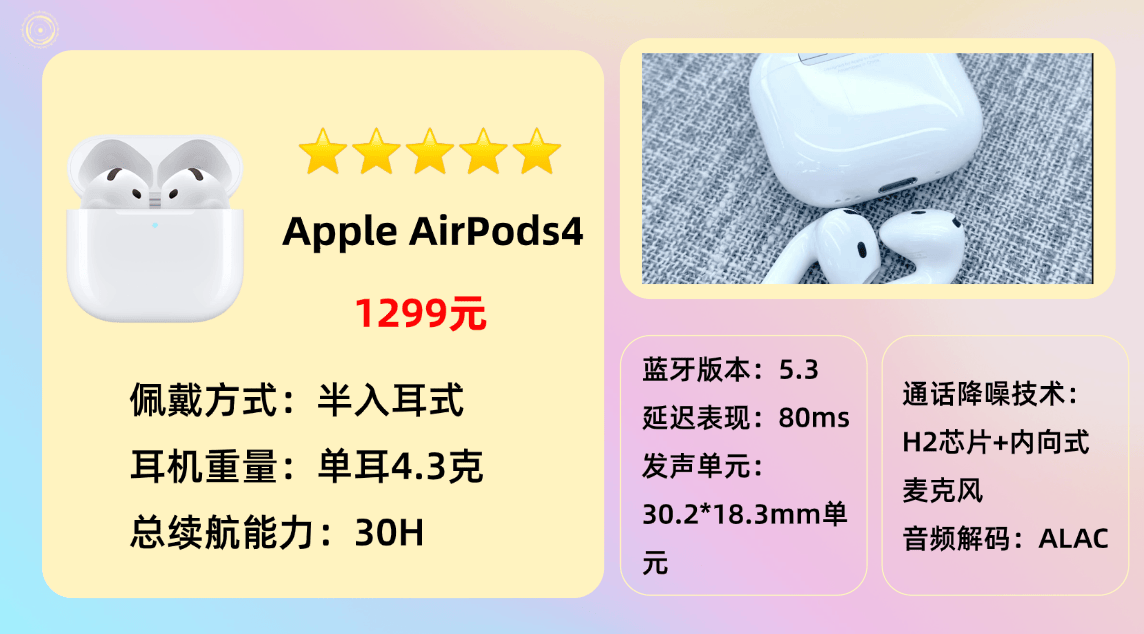 综合型主流品牌3.苹 果A irPods 4蓝牙耳机
