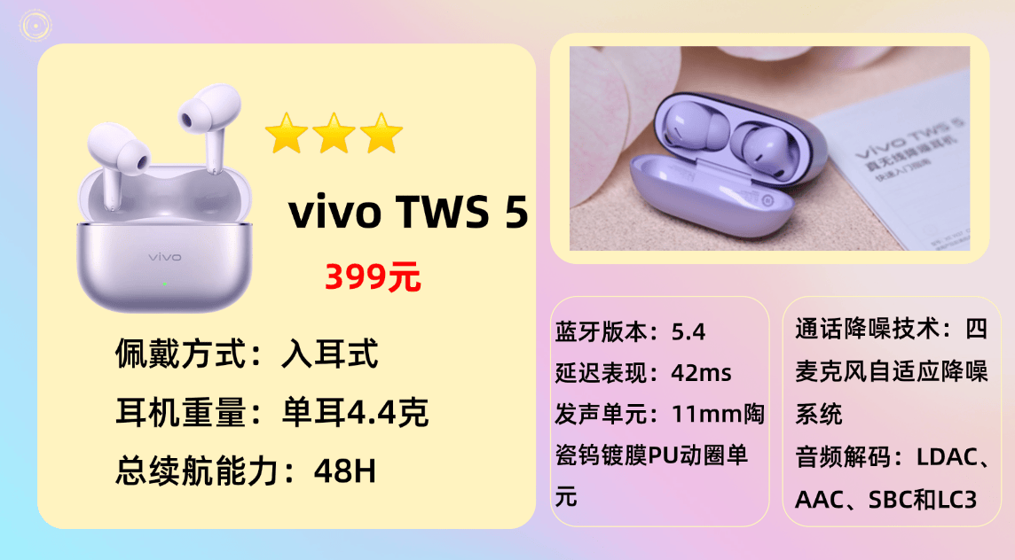 综合型主流品牌4.V ivo T WS 5蓝牙耳机