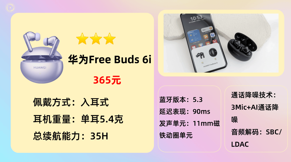 综合型主流品牌9.华 为F reeBuds 6i蓝牙耳机