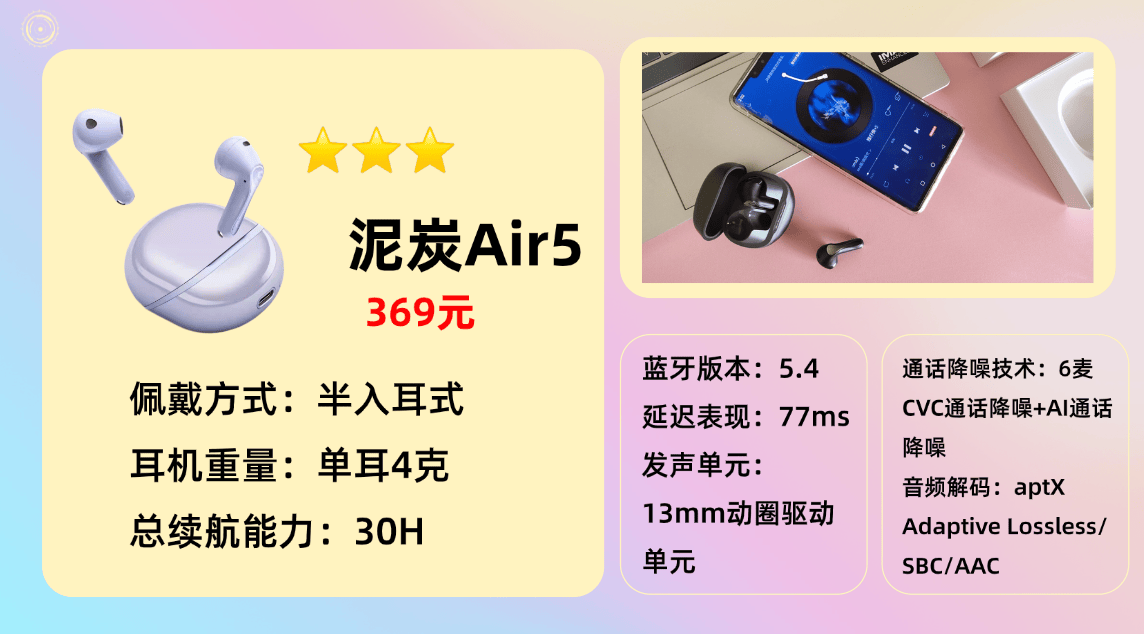 综合型主流品牌8.泥 炭A ir5蓝牙耳机
