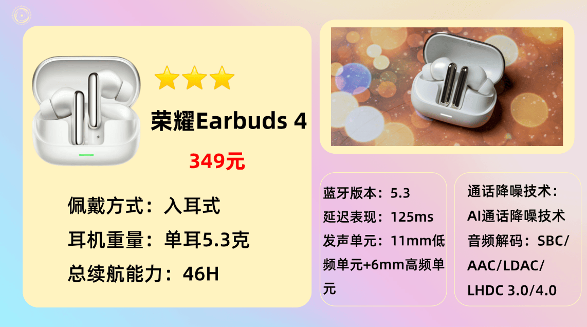 综合型主流品牌6.荣 耀E arbuds 4蓝牙耳机