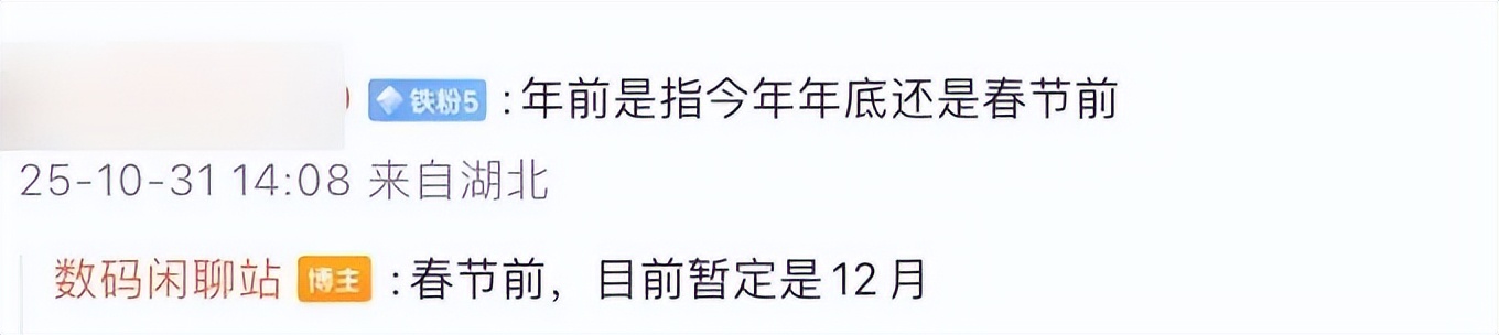 有网友询问“年前是指今年年底还是春节前”,这位博主的回复显示“春节前,目前暂定是12月”。