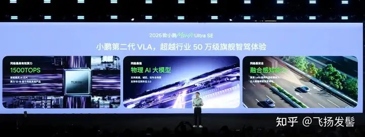 为满足不同用户的智驾需求,新车提供Max版和Ultra SE版双算力版本可选,兼顾高阶性能与实用体验,覆盖全场景出行。其中,Ultra SE版配备双图灵AI芯片,有效算力高达1500TOPS,搭载小鹏第二代VLA,这是一套面向L4时代的物理世界模型,不仅安心丝滑,全场景都能开,而且像老司机一样高效。而Max版搭载单颗图灵AI芯片,有效算力达750TOPS,目前搭载小鹏第一代VLA,2026年第三季度将开启小鹏第二代VLA蒸馏版上车,在驾驶体验、运行帧率、响应时延与稳定性等维度,完整保留小鹏第二代VLA的核心能力。