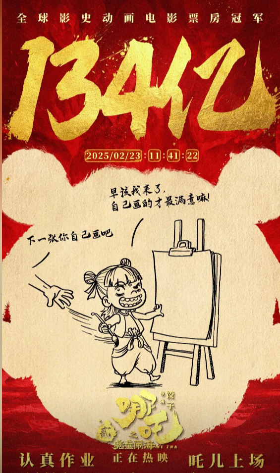 当134亿票房化作国漫里程碑,网友喊话:“建议哪吒3直接拍《大闹天庭股市》,我一定ALL IN!”更有悲观派预言:“照这速度,下次得用银河系当票房单位了!”