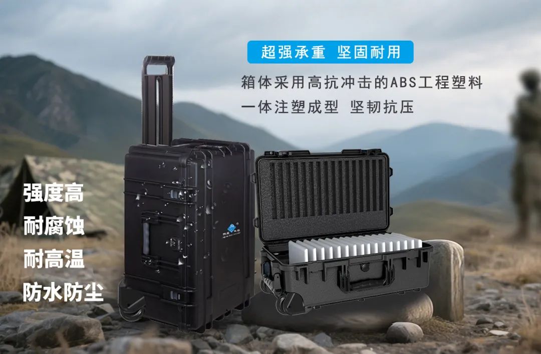 际庆拉杆箱充电柜采用了坚固的外壳材质,具有出色的抗冲击、防尘、防水性能,能够轻松应对各种恶劣环境。即使在野外遭遇碰撞、沙尘侵袭或雨水泼溅,充电柜依然能稳定运行,保障设备的充电和数据同步需求,为军队在各种复杂环境下执行任务提供可靠保障。