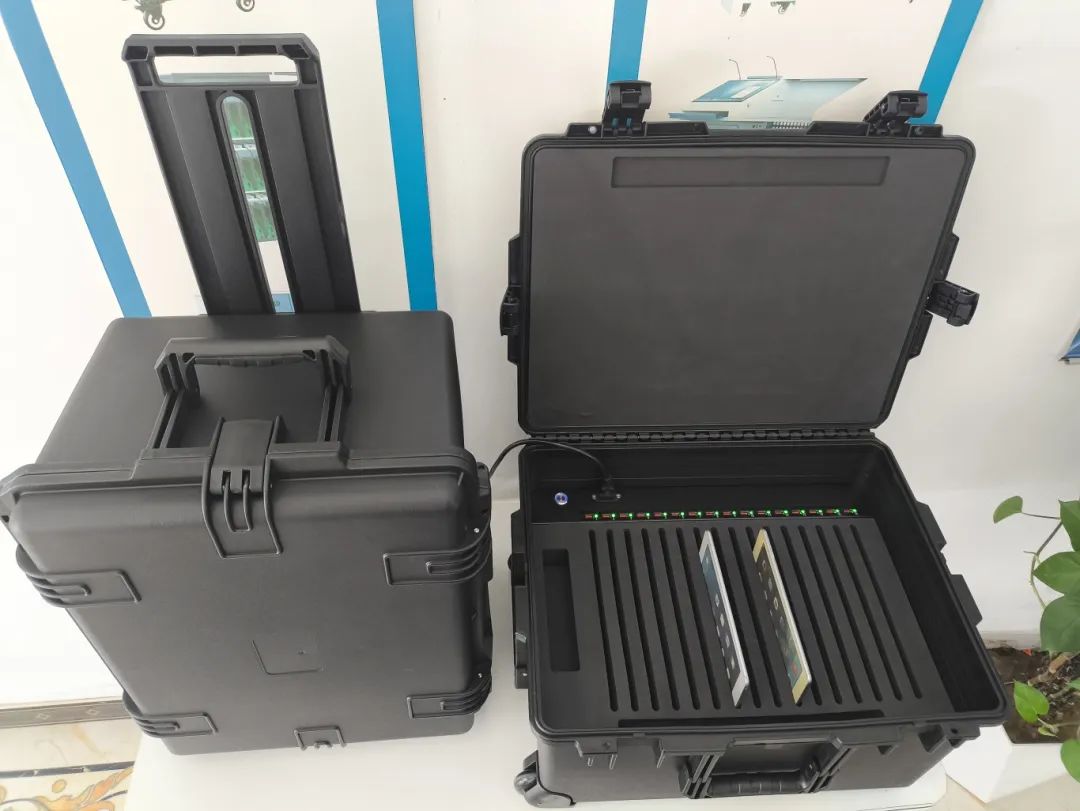 际庆拉杆箱充电柜的设计充分考虑了军队行动的机动性。它采用拉杆箱式的外观,配备了灵活的滑轮和可伸缩的拉杆,方便士兵在行军途中轻松携带。无论是在长途行军、野外驻训还是应急救援行动中,士兵们都能随时随地为电子设备充电,确保设备始终“在线”。