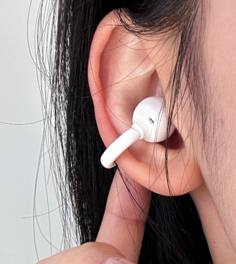 佩戴体验:因为只有4.4g,夹在耳朵上几乎没存在感,耳夹弧度做得刚好,我戴了一下午也没觉得夹耳朵,蹦跶都不会掉,戴眼镜也完全不硌,久戴也没有胀痛感,对小耳朵或者戴眼镜的朋友巨友好。