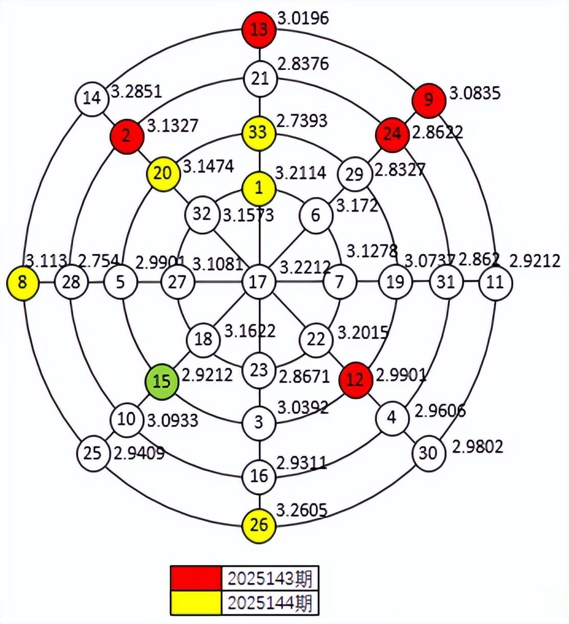 二、2025144期红球与2025143期红球在幻圆图上的对应关系