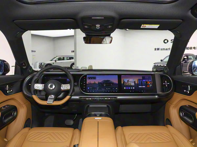 车身侧面来看,新车整体造型采用了较为标准化的SUV车身架构,整体boxy方盒造型的设计理念,让新车看上去更加沉稳。新车腰线贯穿车身至尾部,前翼子板上镶嵌了摄像头,C柱位置内嵌了smart的圆形LOGO,车门采用隐藏式门把手,轮圈为19英寸半封闭式的五辐设计,整体造型搭配有助于减小风阻。车身尺寸方面,新车长宽高分别为4705/1920/1710mm,轴距为2900mm。