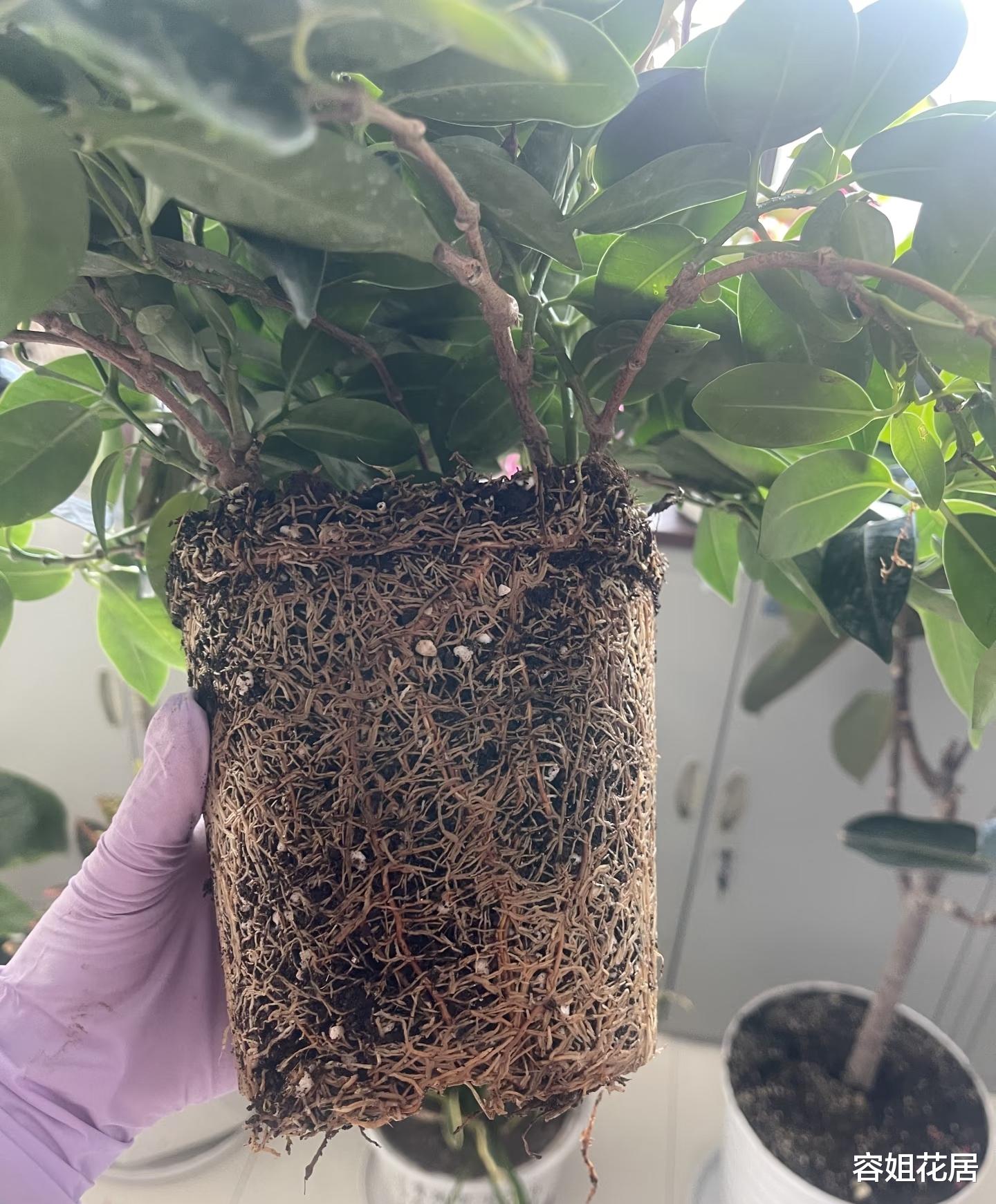 换土的时候,尽量多保留一些护心土,也就是去掉周围的土,留下中间的护心土上盆。这样上盆减少对根系伤害,上盆后3到5天就能服盆生长。