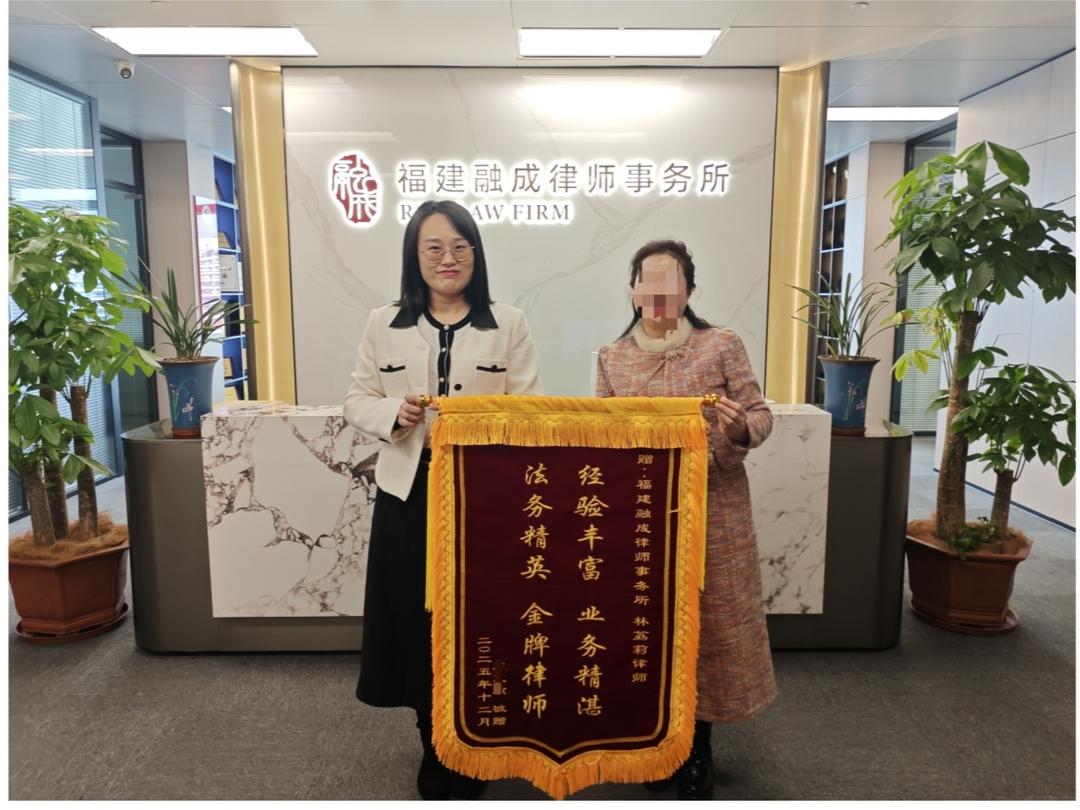 12月17日,福建融成律师事务所内暖意氤氲,一场满载感恩的锦旗赠予仪式在此温情上演。当事人黄女士(化名)将一面镌刻着“经验丰富、业务精湛、法务精英、金牌律师”的锦旗,郑重递至林荔莉律师手中。这面熠熠生辉的锦旗,不仅是对林荔莉律师卓越法律素养与尽责执业态度的至高褒奖,更映照出司法实践中“教育、感化、挽救”方针的温暖底色,书写着法律人以专业守护公平、以温情点亮人心的动人篇章。