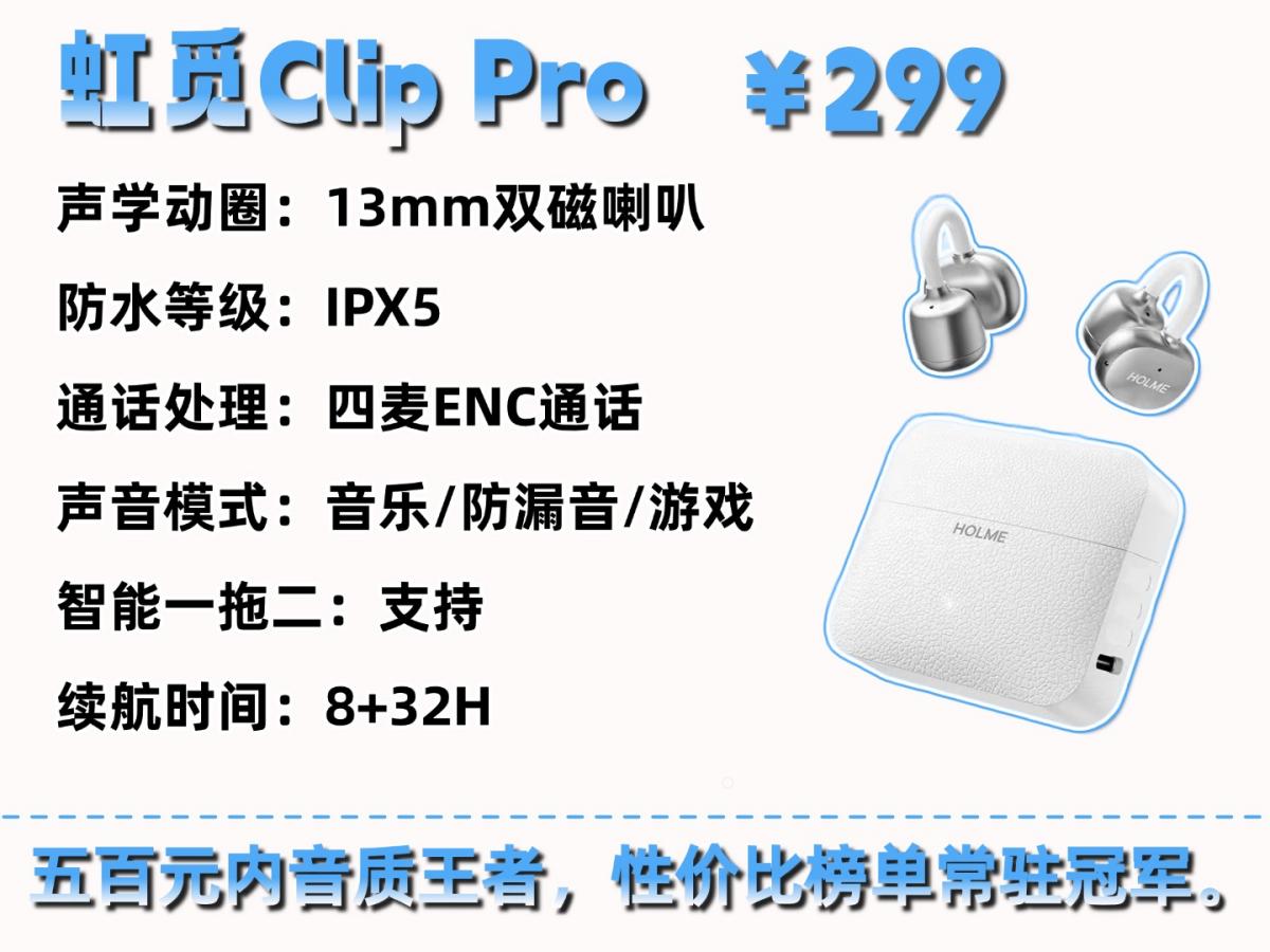 热门口碑款耳夹式耳机推荐!虹觅Clip Pro价格:299元