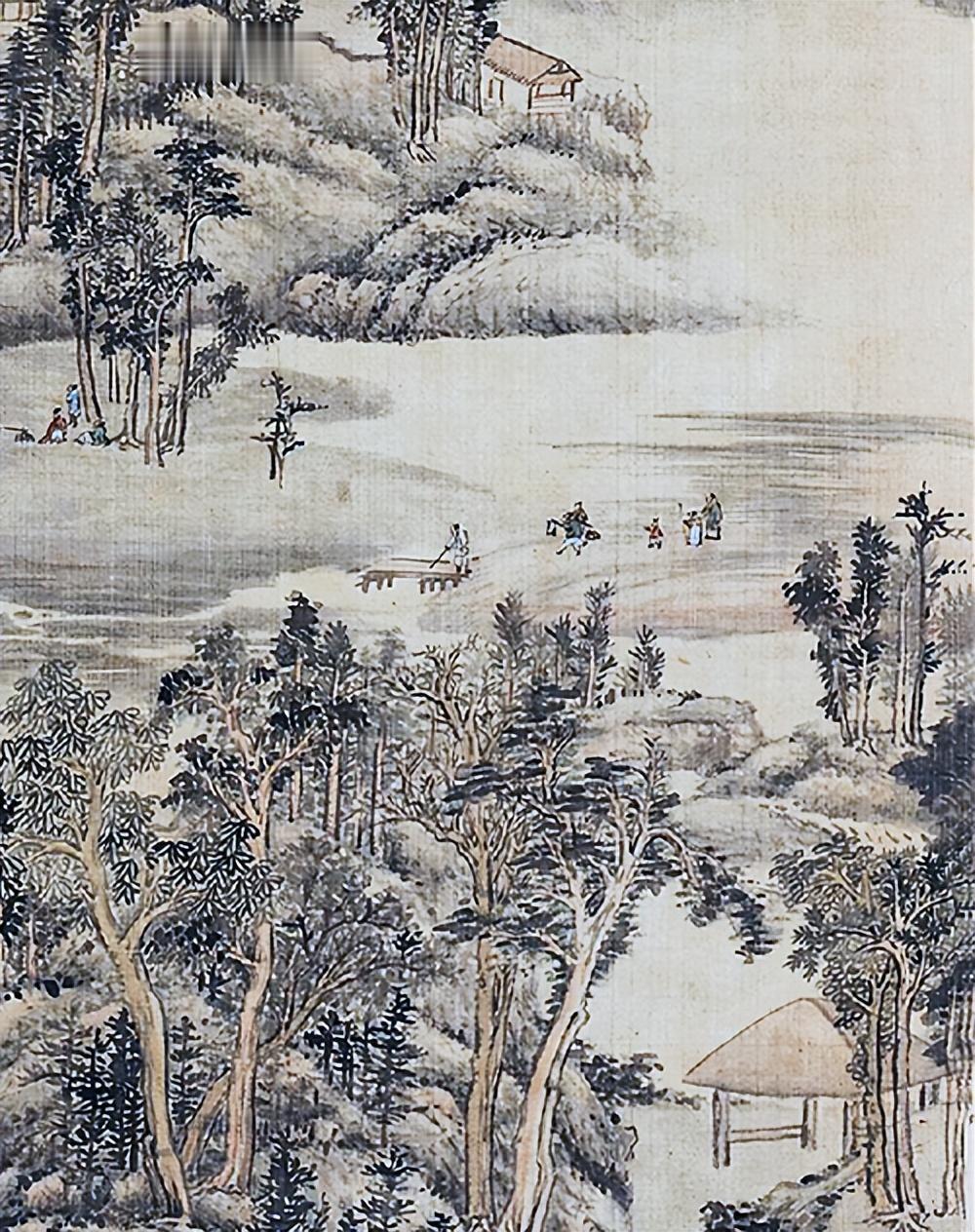 明代两代文人画家在创作仿古山水画的时候,为了强调超逸脱俗的情趣,往往会忽视古画中对生活细节的描绘。他们用文人泛舟、山居读书等细节强调文人画属性。方士庶见过真迹,他才发现了被其他画家忽视的内容。