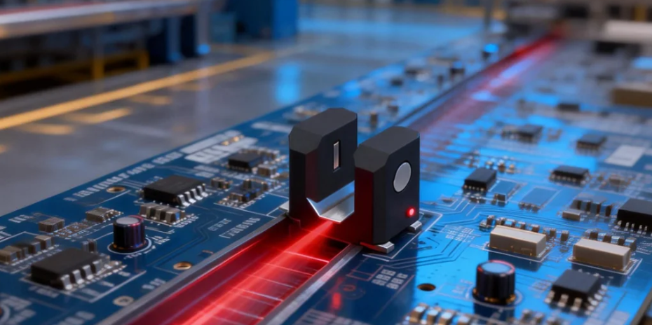 与分离式成品光电开关不同,PCB安装版本通常采用紧凑型结构设计,如U型槽结构,将发射器和接收器并排封装在小型化外壳中,使其能够直接集成到电路板上。这种光电晶体管输出光电开关具有高精度和快速响应的特点。