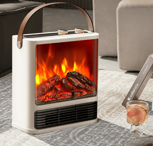 紧凑便携设计:暖风机整体尺寸不大,适合小空间使用。背部设计有一个便携的把手,方便你随时搬动和放置在需要取暖的地方。